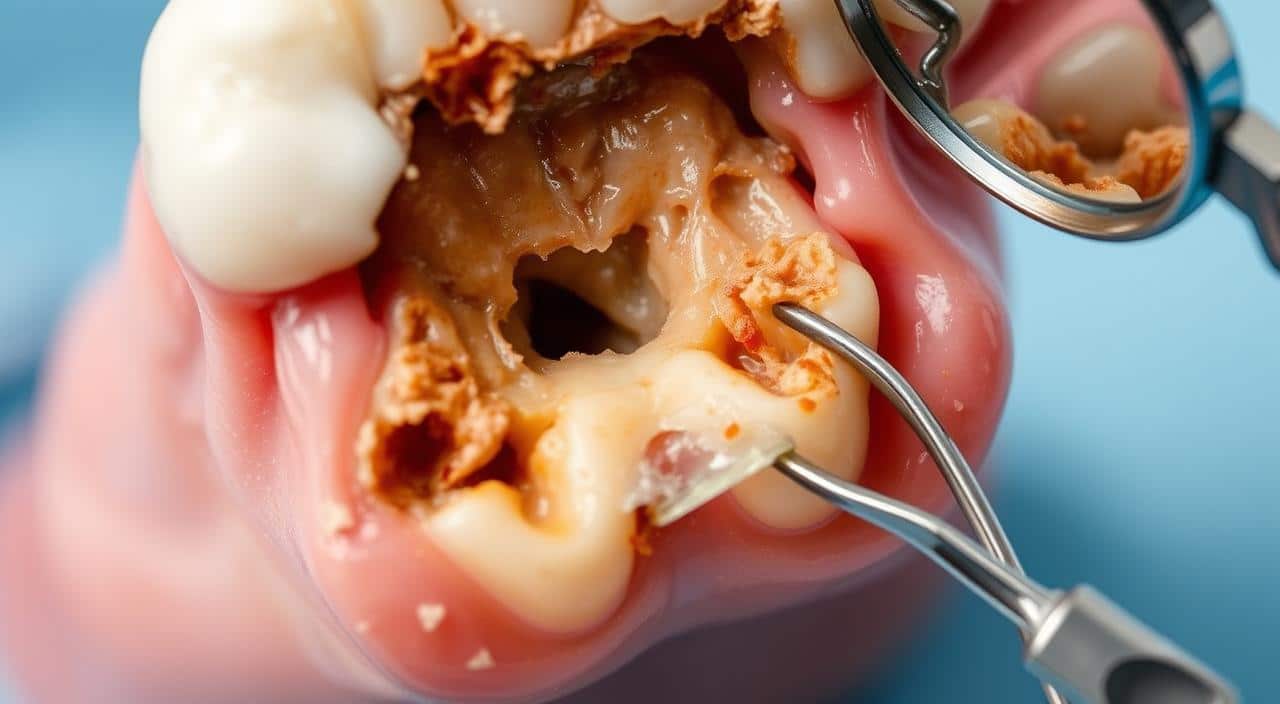 A cárie profunda cresce devagar. Se não tratada, pode fazer o dente cair. É crucial entender os estágios para tratar bem.
